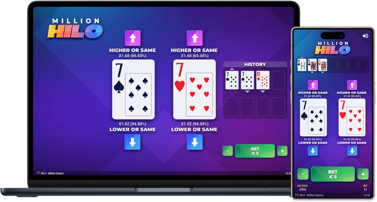 Million HiLo combines the simplicity of a traditional HiLo game with its mix of speed, strategy, and flexible cash-out choices, it’s designed to deliver high engagement and strong replay value.